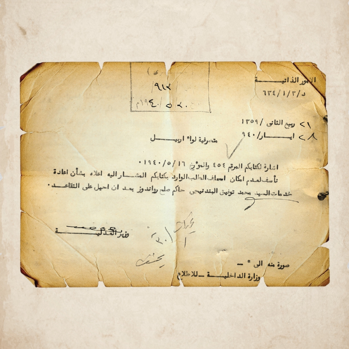 بەڵگەنامەیەكی فەرمی ئاشكرای دەكات كە ساڵی ١٩٦٢ پارێزەرێکی هەولێر، بەهۆی ئەوەی براکەی بووەتە پێشمەرگەی شۆڕشی ئەیلوول، د