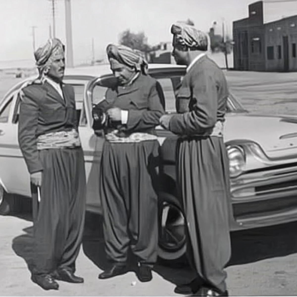 لەم وێنەیەدا، لە ڕاستەوە بایزاغای گەردی ئاغای گوندی بەحرکە، شێخ محەمەد نەقشبەندی باوکی پارێزەر کاکەڕەش نەقشبەندی و قاد