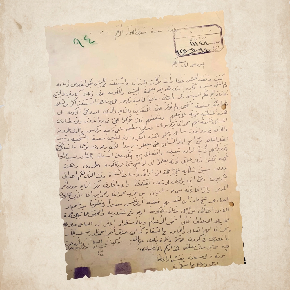 بەڵگەنامەیەكی فەرمی ئاشكرای دەكات كە ساڵی ١٩٦٢ پارێزەرێکی هەولێر، بەهۆی ئەوەی براکەی بووەتە پێشمەرگەی شۆڕشی ئەیلوول، د